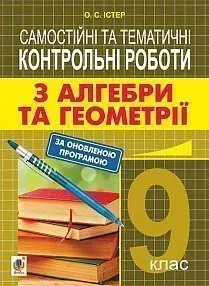 У посібнику запропонована добірка завдань для проведення тематичного оцінювання з алгебри та геометрії учнів 9-го класу. Тексти завдань складено відповідно до програми з математики для загальноосвітніх навчальних закладів і за чинними в Україні підручниками. Призначений для учнів загальноосвітніх середніх шкіл, гімназій, ліцеїв, для абітурієнтів, а також учителів і методистів.