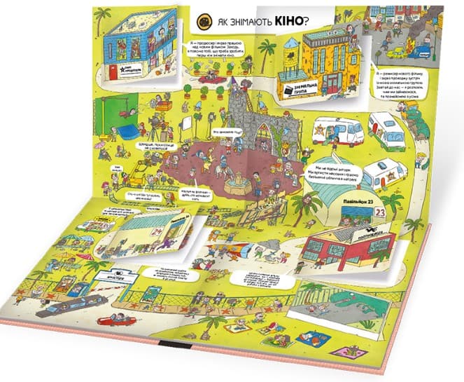 Як влаштовано театр і як поставити п’єсу? А як знімають кіно? Чим займається продюсер, а за що відповідає режисер? Як створюються мультфільми, хто працює в анімаційних студіях? Як організовано симфонічний оркестр і як він готується до виступів?Як організувати мегаконцерт всесвітньо відомої зірки? А як народжується образотворче мистецтво? У цій книжці про все це розповідається в деталях і в незвичному форматі. Це pop-up видання – з додатковими розгортами, яскравими ілюстраціями, картами, та з книжечками в книжці аби юним читачам було цікавіше дізнаватись про всі мистецькі секрети.