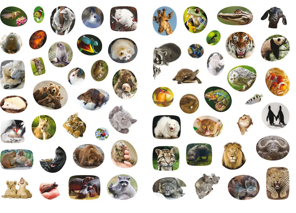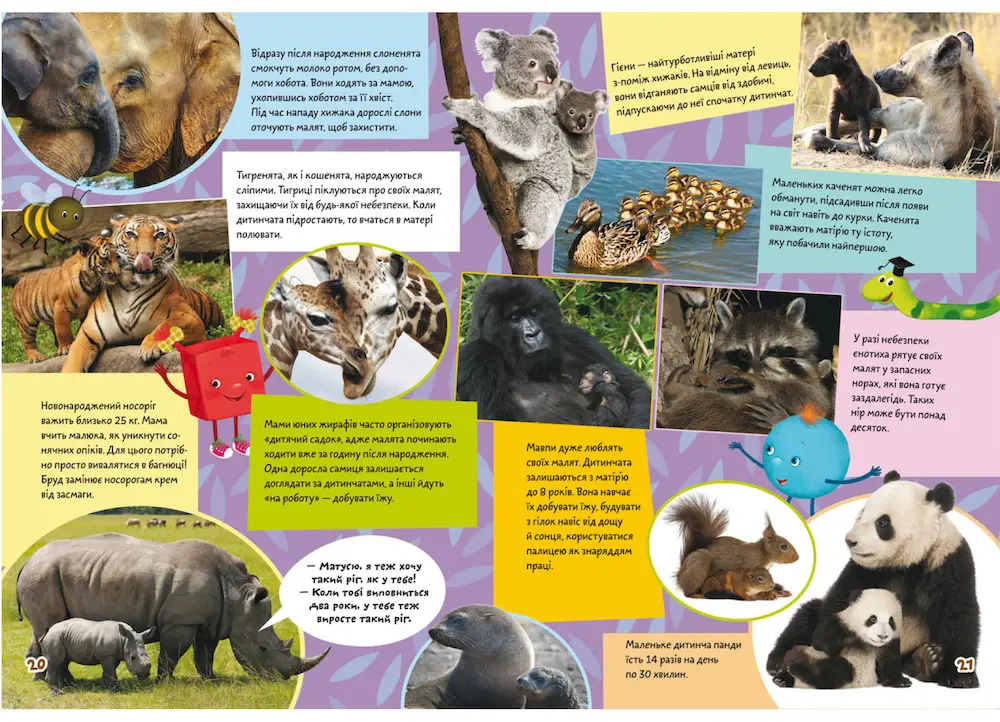 Як сплять панди?  Хто такі альбіноси?  Навіщо звірам хвіст?  Дізнайся найцікавіше про дивовижних тварин!  Навчайся та грайся із 60 розвивальними наліпками!