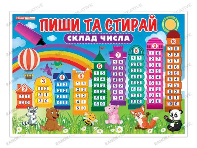 Ламінований двосторонній плакат (34х24 см) допоможе вашій дитині опанувати склад числа.
