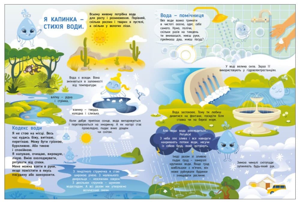 Природа живе і розвивається завдяки чотирьом стихіям: повітря, земля, вода, вогонь. І ти можеш дізнатися деякі їх таємниці: в чому їх сила, як вони допомагають природі та діяльності людини й чому можуть бути небезпечними. Стихії постійно взаємодіють між собою і з нами. Хутчій, вони хочуть тобі дещо розказати про себе. А наприкінці книжки ти зможеш навіть пограти із стихіями.