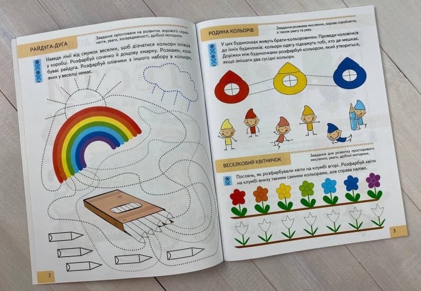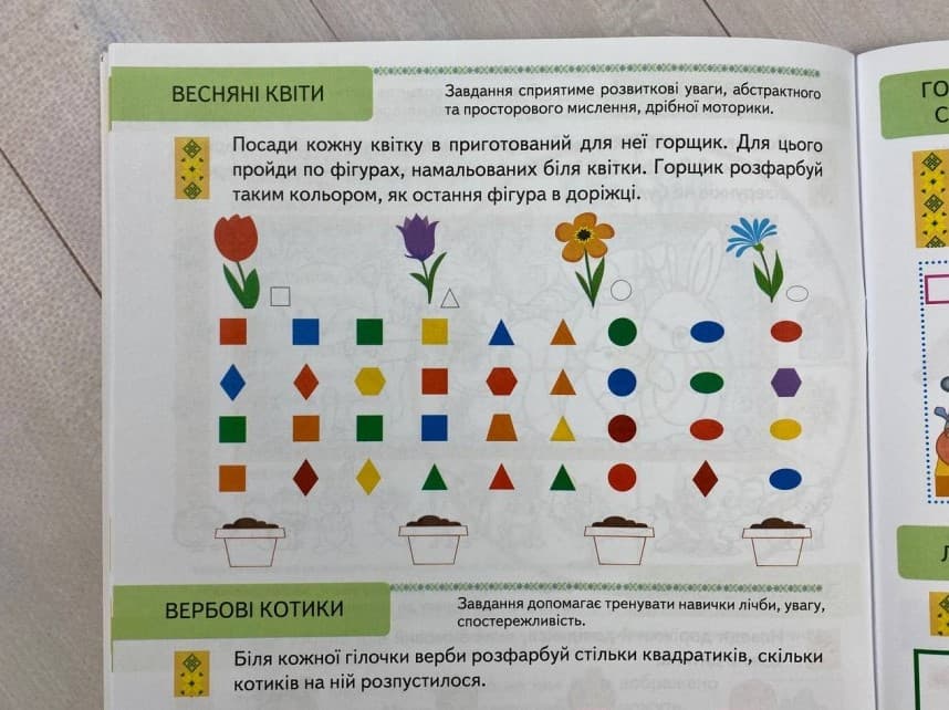 - Кольори та форми — вправи для розвитку мислення й уважності.