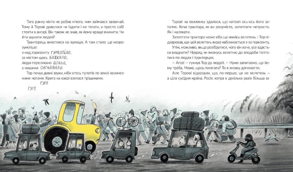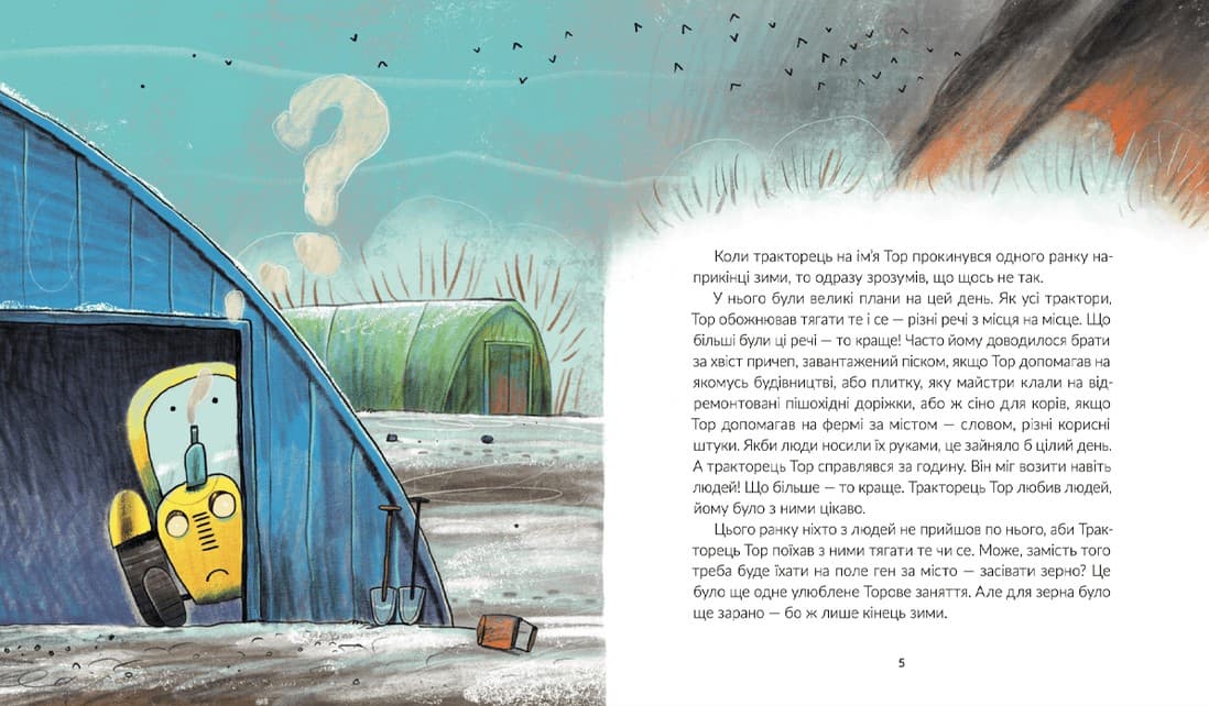 Тракторець Тор дуже любив тягати те й се, а також допомагати людям засівати зерно. Та, прокинувшись одного ранку наприкінці зими, він зрозумів, що щось не так. У його країну прийшла війна. Його місто було під постійною загрозою — як і вся Україна. Чим же Тракторець міг зарадити, коли вмів лише тягати те й се? Але саме це вміння стає Тракторцеві Тору в пригоді: він рятує будинок хлопчика від розгромлення, допомагає військовим тягати ворожі танки й долучається до оборони міста. А ще знайомиться з незвичайними їжаками та Сиреною, які теж стоять на обороні міста. У цій історії кожен упізнає трохи себе і своє місто, відчує силу єднання та любові до свого дому.