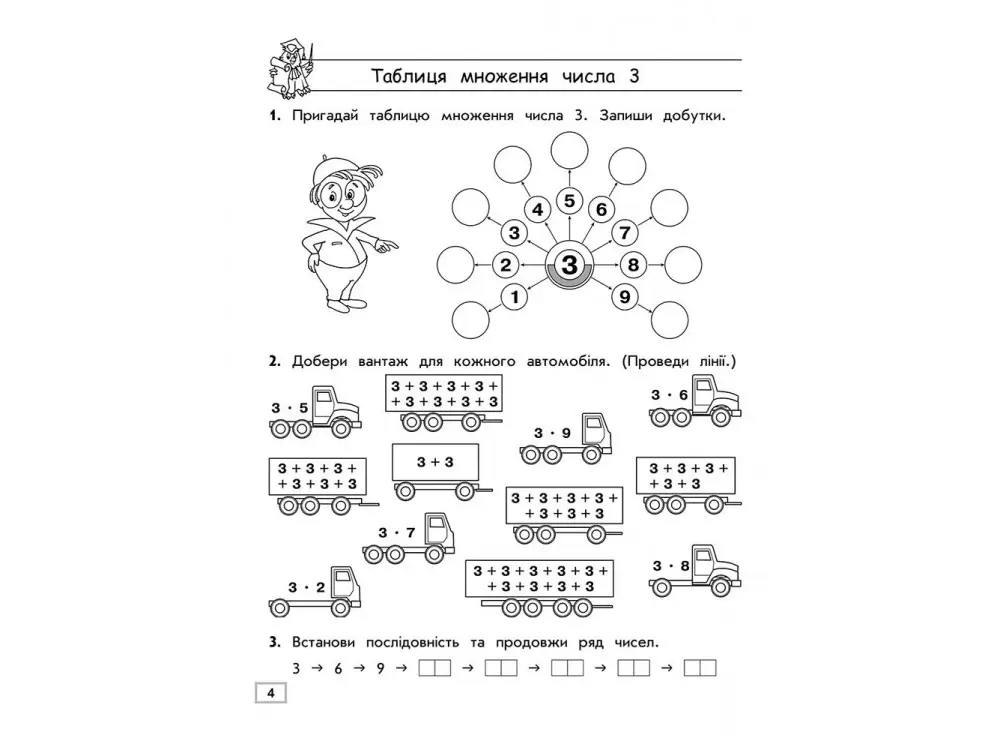 Велика кількість прикладів на відпрацювання навичок лічби усно та письмово, зорові образи для якісного запам’ятовування матеріалу допоможуть юним математикам легко і успішно оволодіти табличним множенням.