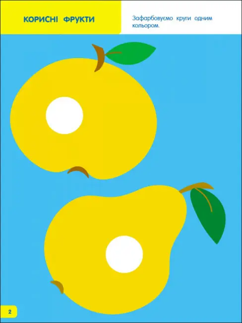 Розмальовка «Вчимося зафарбовувати» для малят, що вчаться користуватися олівцями. Діти зафарбовуватимуть спочатку 1 плямку по формі фігури, потім 2 плямки. Далі розфарбовуватимуть частину, а згодом і повний малюнок. Малята познайомляться із формами та навчаться добирати кольори, зафарбовувати дзеркальні картинки та різні об’єкти. Все поступово. Такий підхід допомагає опанувати перші навички майбутнього охайного письма. «Вчимося зафарбовувати» – кольорове дозвілля з користю!