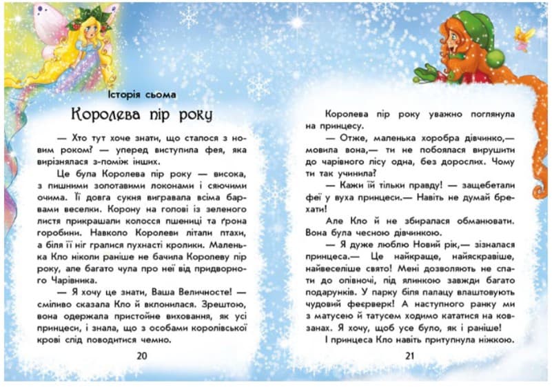 Читайте про неймовiрнi новорiчнi пригоди! Усе в Чарівній країні було готове до святкування Нового року. Та раптом стрілки годинників зупинилися, не дійшовши до півночі. На календарі з’явилася біла пляма. Новий рік у королівство й не думав приходити… І тоді принцеса Кло вирушила на його пошуки. Чи вдасться їй повернути Новий рік? Читайте про пригоди відважної принцеси у цій книжці.