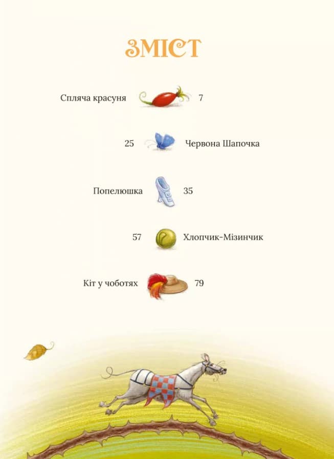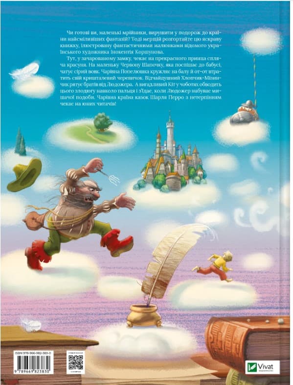 Тут, у зачарованому замку, чекає на прекрасного принца спляча красуня. На маленьку Червону Шапочку, яка поспішає до бабусі, чатує сірий вовк. Чарівна Попелюшка кружляє на балу й от-от втратить свій кришталевий черевичок. Відчайдушний Хлопчик-Мізинчик рятує братів від Людожера. А вигадливий Кіт у чоботях обводить цього злодюгу навколо пальця і з’їдає, коли Людожер набуває мишачої подоби. Чарівна країна казок Шарля Перро з нетерпінням чекає на юних читачів!