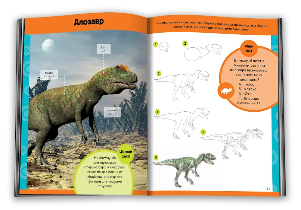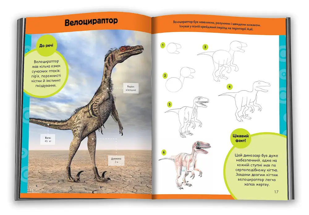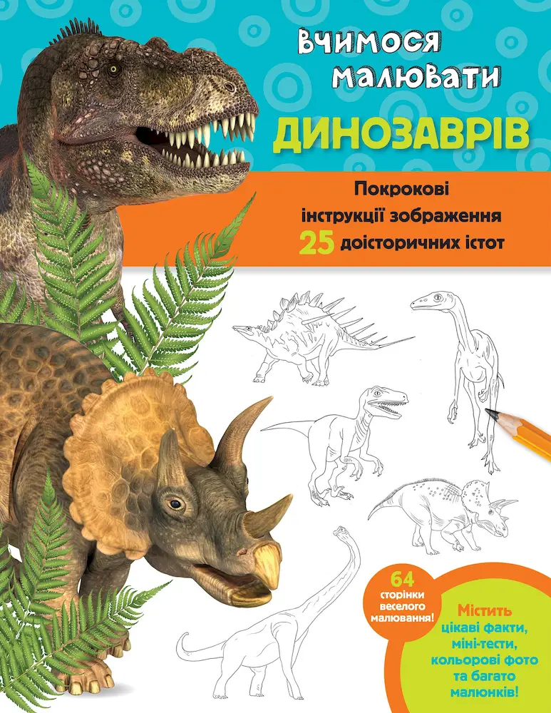 Гігантські, зубаті, жаскі — саме такими були майже всі динозаври, що колись населяли нашу землю. Ця книжка — цілковите занурення в еру динозаврів! З її допомогою ви не лишень навчитеся малювати 25 найпопулярніших доісторичних істот, а й довідаєтеся про них багато цікавого.