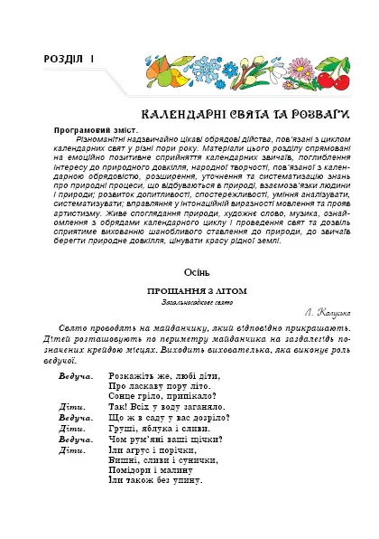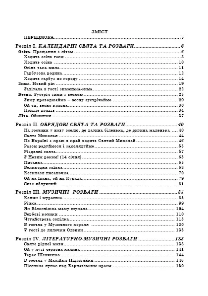 Збірка розваг для дошкільників та молодших школярів складається з 2-х книг, насичених різноманітним музично-пісенним, художньо-мовним, ігровим і драматичним матеріалом, дібраним відповідно до вікових особливостей дітей та апробованим у навчальних закладах.