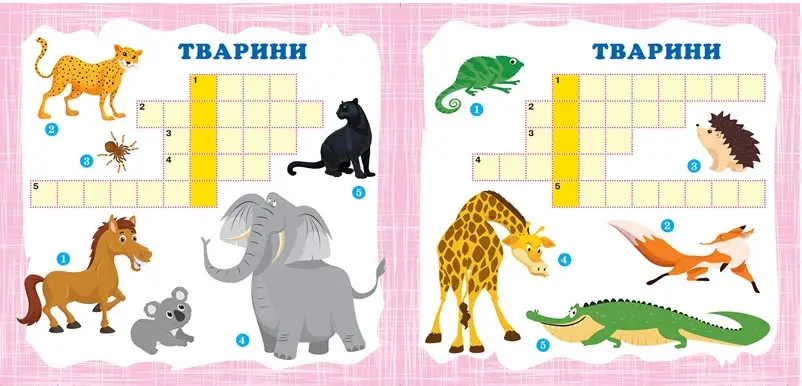 Одними з найцікавіших і найпопулярніших головоломок у світі є кросворди. У цій книжці представлені кросворди на різні теми, а відповіді на них маленький розумник зможе скласти за допомогою літер-наліпок. Завдання до кросвордів представлені малюнками-підказками, а також загадками. Книжка буде цікава допитливим і кмітливим дітям, які полюбляють вирішувати логічні завдання.