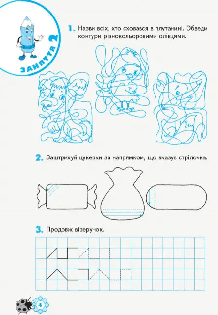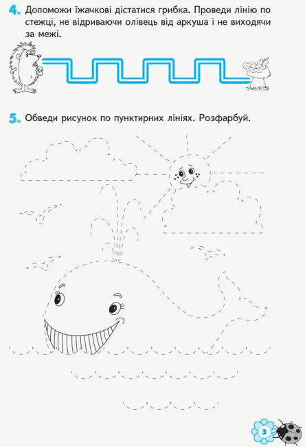 Вміщені у робочому зашиті заняття допоможуть підготувати дитину до оволодіння навичками письма. Ігрові завдання сприяють розвитку дрібної моторики пальців і кистей рук, зорового сприйняття, уваги, охайності, вміння діяти за правилами; допоможуть набути навичок виконання графічних завдань.