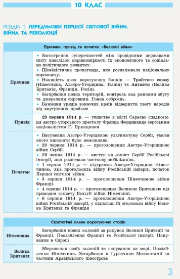 Пропонований навчальний посібник є довідником із курсу всесвітньої історії для 10—11 класів. Він охоплює події початку XX ст. — початку XXІ ст. Матеріал подано у вигляді схем і таблиць, що полегшує його сприйняття, узагальнення та систематизацію, а також дозволяє скоротити час на повторення у ході підготовки до тематичного контролю та зовнішнього незалежного оцінювання.