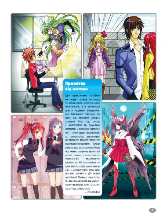 Крістофер Гарт, автор світових бестселерів із порадами для художників, пропонує стислий і ґрунтовний посібник для створення яскравих персонажів у найпопулярніших жанрах аніме. Формуючи образи за допомогою простих шаблонів, Кріс показує, як покроково малювати типових школярів і школярок, дітей, лиходіїв, комічних і фентезійних персонажів. Завдяки зрозумілим вказівкам і чудовим наочним прикладам і початківці, і досвідчені художники знайдуть на цих сторінках натхнення, спостерігаючи за великим розмаїттям персонажів, яких можна створити з елементарної основи.