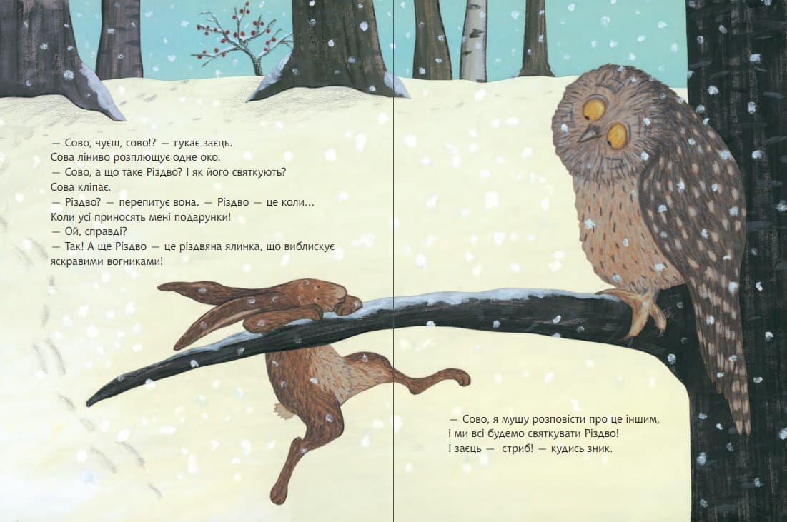 «Різдво – це коли усі приносять мені подарунки», – пояснює сова маленькому зайчикові, і той одразу ж ділиться почутим із рештою лісових мешканців. І от уже усі звірі майструють дарунки для сови. Коли ж ті нарешті готові, одна за одною трапляються халепи…
