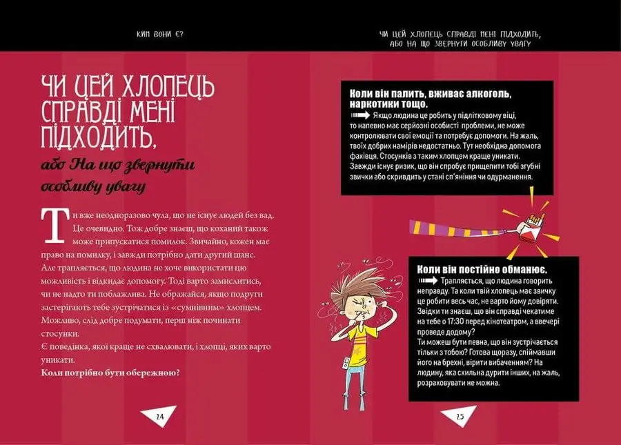 Хлопці здатні в одну мить розізлити нас, а вже за хвилину розсмішити дотепним жартом чи зворушити милою витівкою. Ну як їх витримати і не з’їхати з глузду?! Прочитай порадник, і дізнаєшся, якими хлопці є насправді і чому саме такими. Окрім того, знайдеш відповіді на інші питання, які цікавлять тебе щораз більше: про що і як розмовляти з хлопцем, як поводитися на побаченні і вгамувати у собі вир суперечних почуттів. Дізнайся більше про світ хлопців, щоб краще й певніше почуватися в їхньому товаристві.