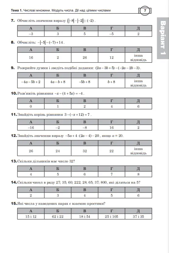 ЗНО. Математика: Тестові завдання. Частина І : Алгебра