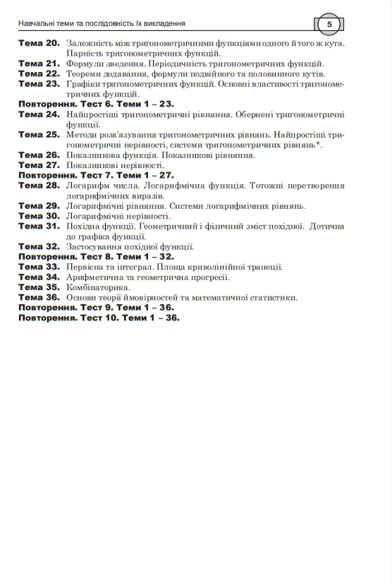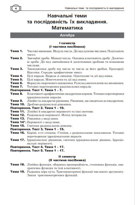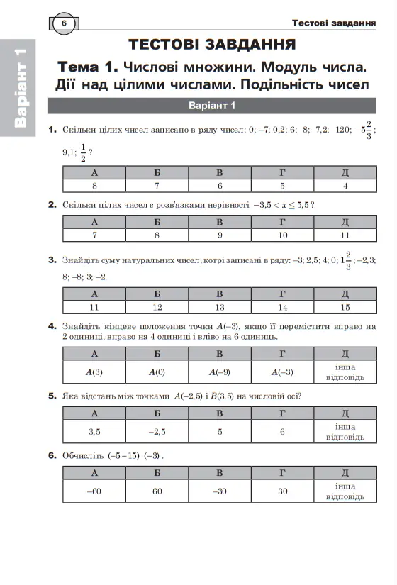 Метою пропонованого навчального посібника є організація самостійної роботи учнів при підготовці до зовнішнього незалежного оцінювання (ЗНО). Тестові завдання частини І містять тематичні завдання, укладені у двох рівноцінних варіантах до сімнадцяти тем з алгебри та математики 5-го – 6-го класів. Усі тестові завдання відповідають чинній програмі з математики для загальноосвітніх навчальних закладів та вимогам щодо написання сертифікаційної роботи ЗНО.